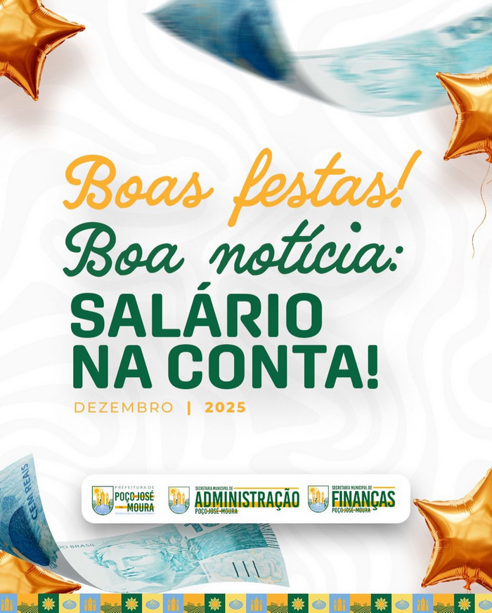 30/12/2025 - 13:40h - NotíciasA Prefeitura de Poço de José de Moura realizou o pagamento do salário referente ao mês de dezembro de 2025 aos servidores municipais. A medida garante que os trabalhadores encerram o ano com os vencimentos creditados em conta, assegurando tranquilidade no período das festas.